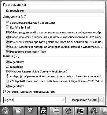 Рис. 1.1. Поиск редактора реестра