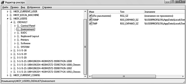 Рис. 1.3. Подразделы раздела HKEY_USERS