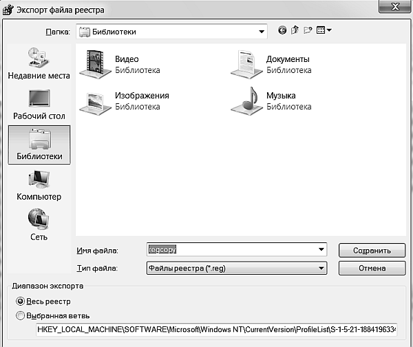 Рис. 1.6. Создание архивной копии реестра