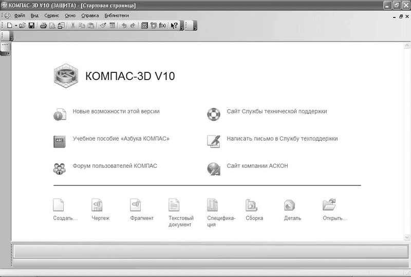 Рис. 1.1. Стартовая страница КОМПАС-3D V10