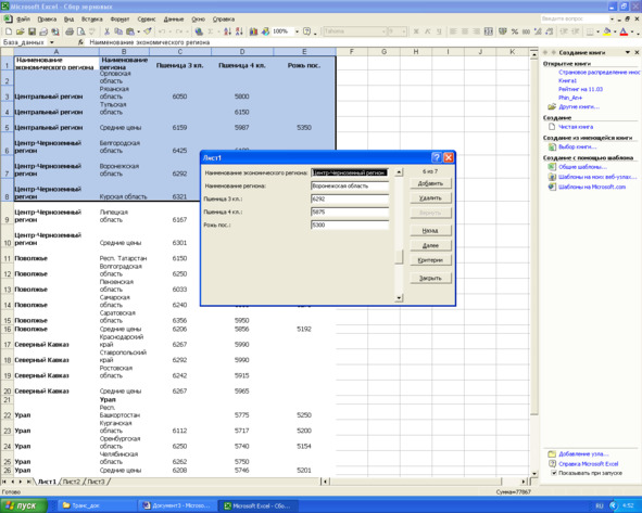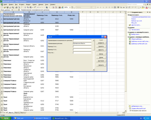 Отсортируем список в файле «Сбор Зерновых» в алфавитном порядке по столбцу «Наименование региона».