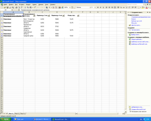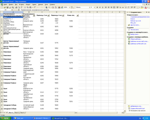Все задания по фильтрации исходного списка, записанного в файле «СборЗерновых», будем выполнять в файле «Фильтр СборЗерновых». Для этого сохраните исходный файл «СборЗерновых» под именем «Фильтр СборЗерновых», используя команду «Файл», «Сохранить как».