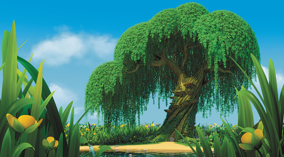 На ветру слегка покачивались ветви большой старой ивы. Внизу сверкала вода пруда, из которой то и дело выпрыгивали озорные мальки. А над зелёной полянкой уже вовсю летали трудолюбивые пчёлы.