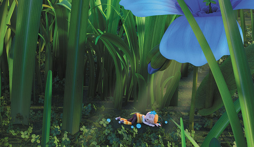 На Вупсеня попало так много сонной пыльцы, что он уснул и начал громко храпеть. От резкого звука все подскочили на месте, а Пчелёнок проснулся и с трудом приоткрыл глаза: