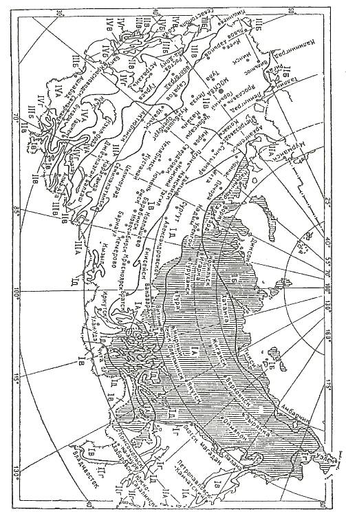 Рис. 1.1. Границы климатических районов (Заштрихована северная строительно-климатическая зона)