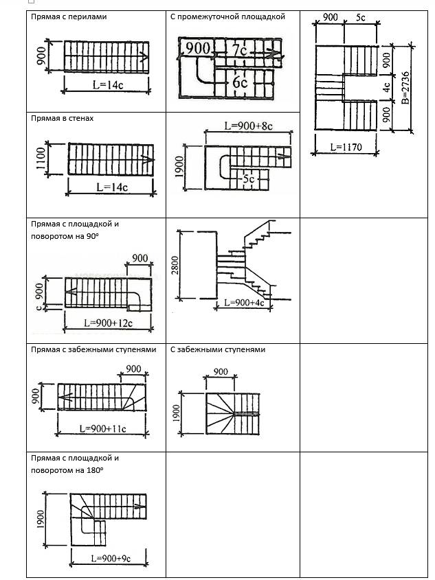 Рис. 1.15. Одно-, двух- и трехмаршевые внутриквартальные лестницы