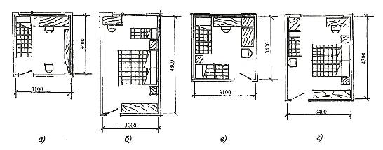 Спальные комнаты (рис. 1.4., 1.5.) проектируют: