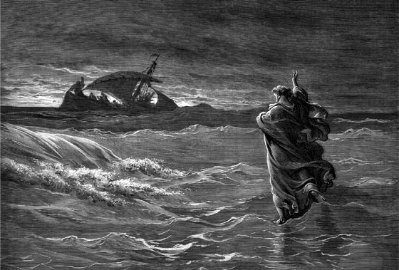 Иисус Христос идет по воде. (Евангелие от Матфея 14:22–31)