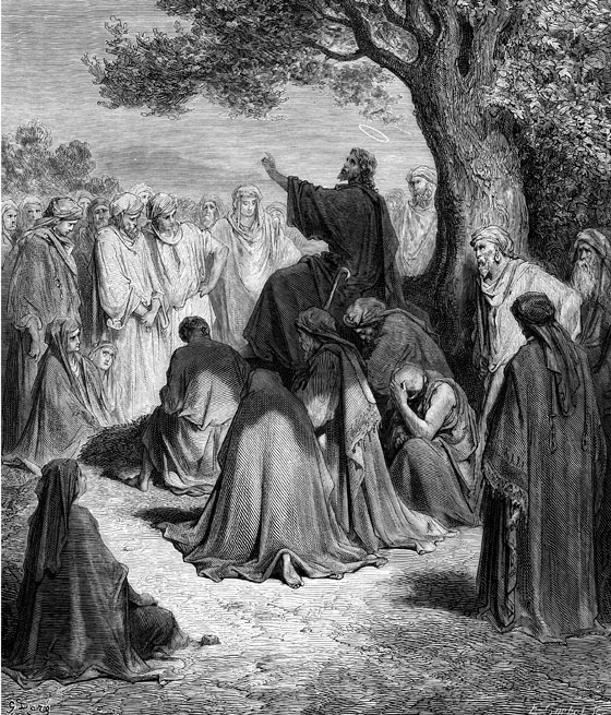 Иисус Христос проповедует народу. (Евангелие от Матфея 4:21–23)