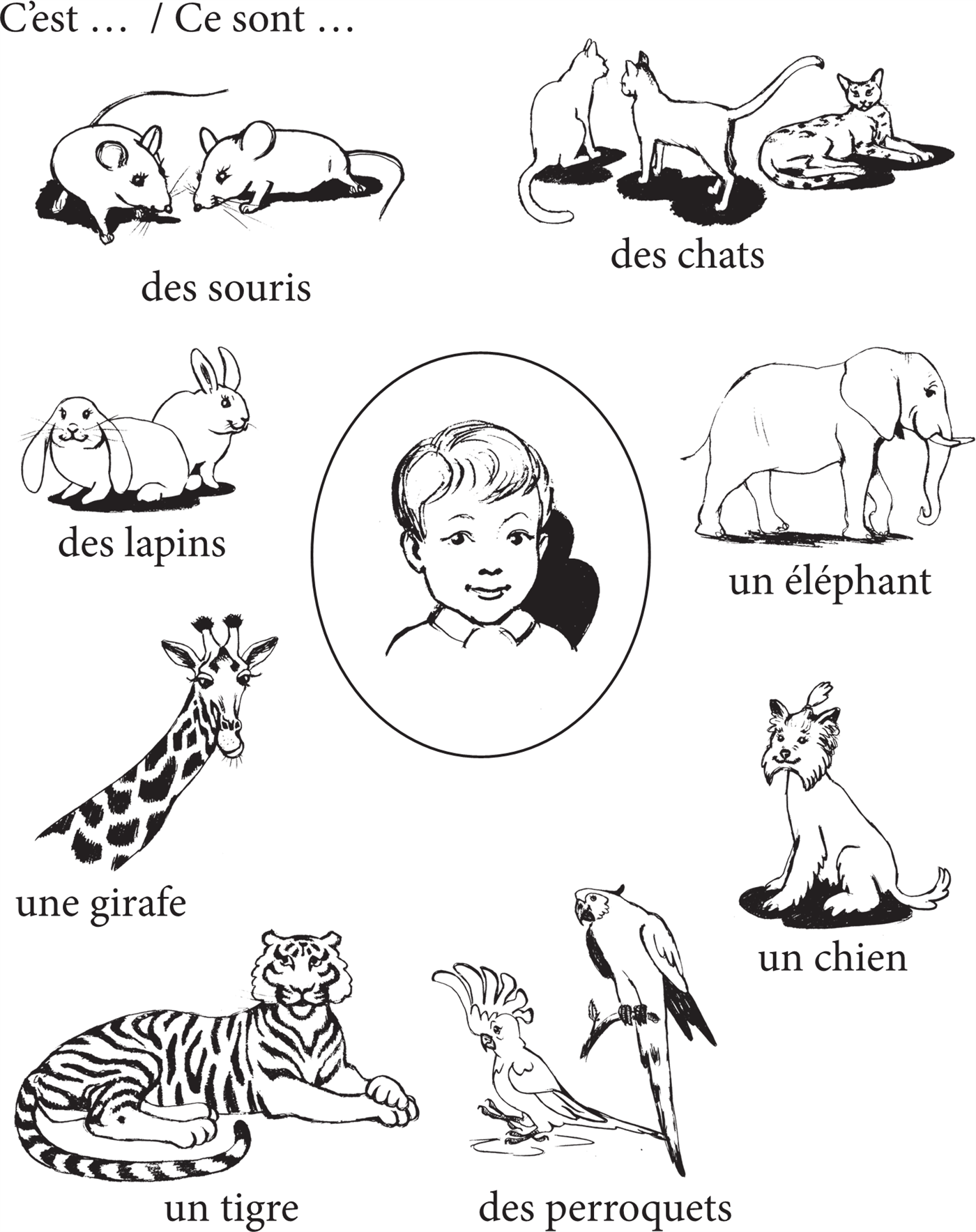 ⧫ Маленький Люка называет животных и птиц по-французски. Что он говорит?