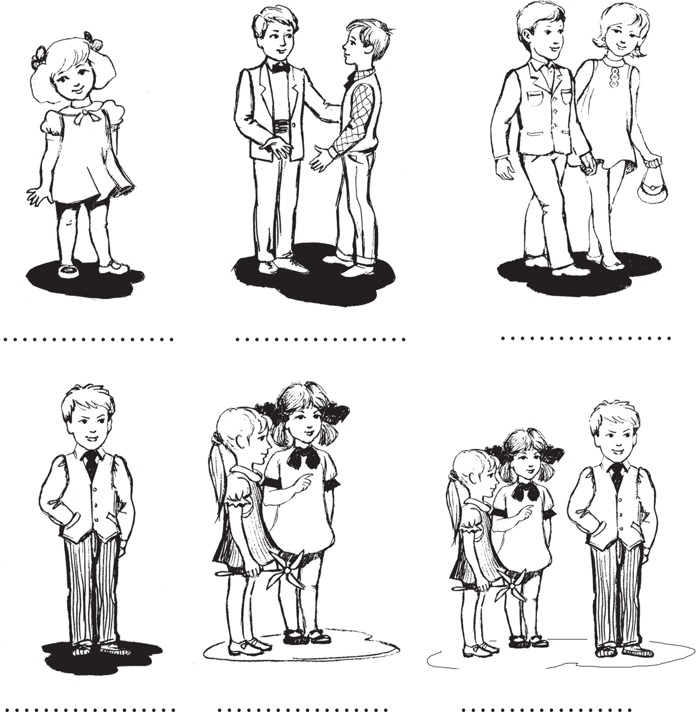 ⧫ Как ты скажешь о детях, изображённых на картинках: il, elle, ils или elles? Сделай подписи к рисункам.