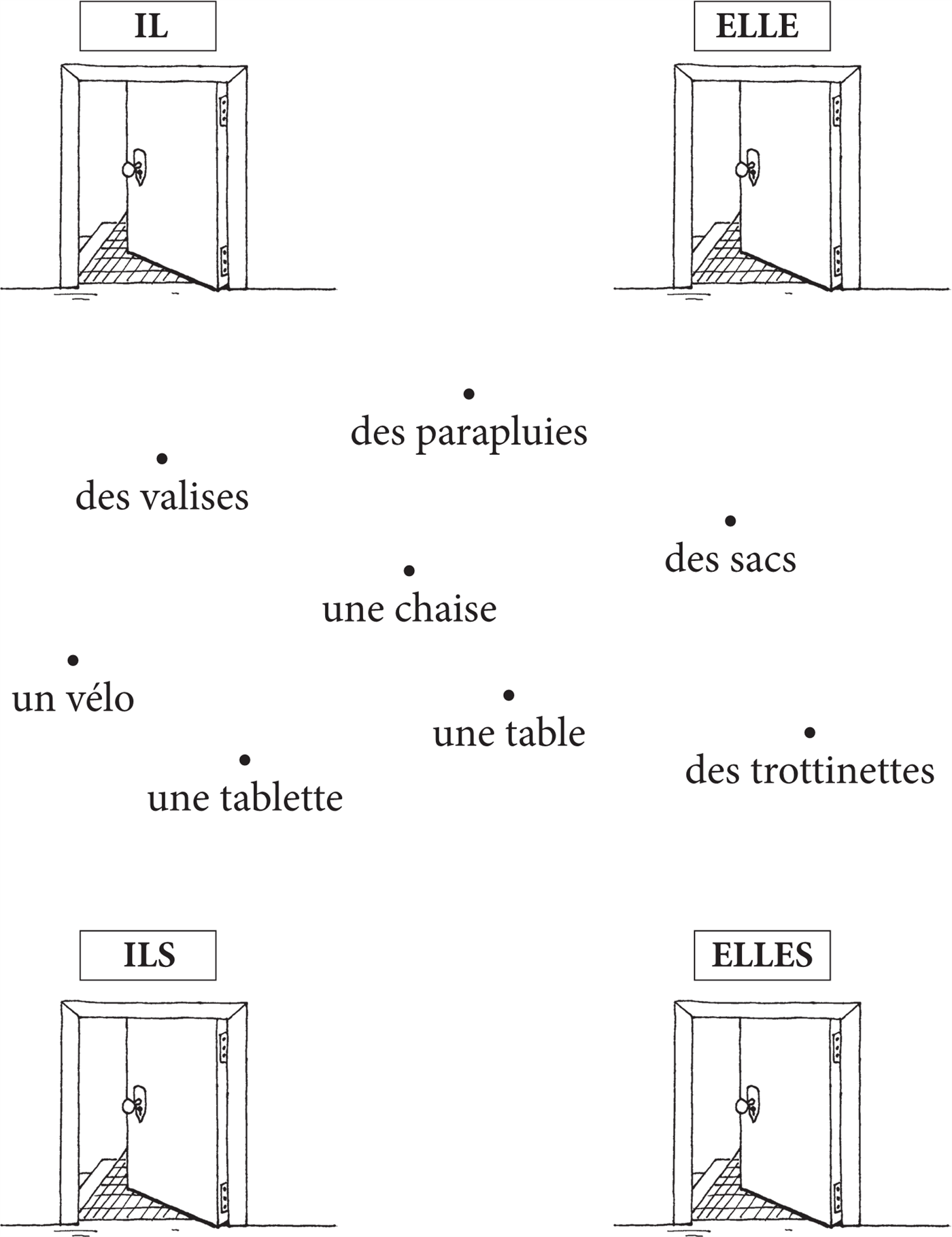 ⧫ Замени существительные на местоимения il, elle, ils или elles.