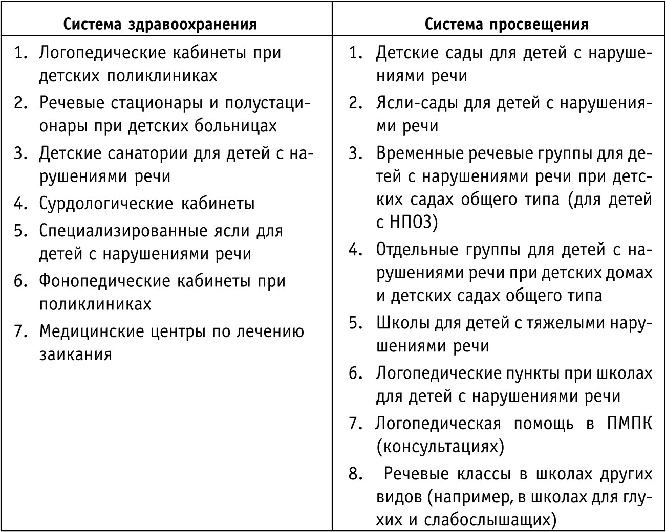 Система оказания лечебной помощи лицам с нарушениями речи является макросистемой, состоящей из большого количества подсистем (в рамках отдельных медицинских дисциплин – психиатрии, невропатологии, ортопедии, оториноларингологии), которые, с одной стороны, сами являются системами (микросистемами), имея свою структуру и специфику деятельности, а с другой – будучи частью всей системы здравоохранения, имеют общее предназначение.