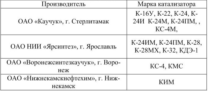 Основные производители и марки катализаторов дегидрирования