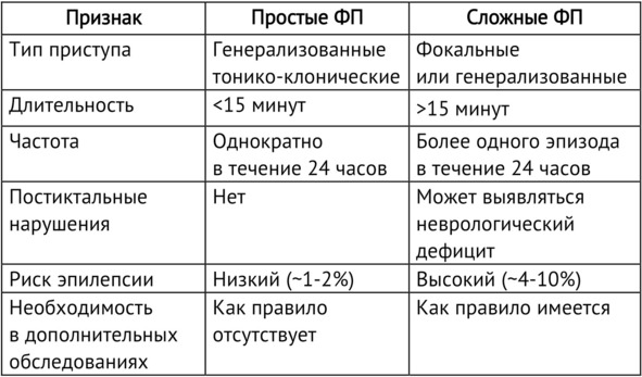 Фебрильные приступы (ФП) являются наиболее распространенным типом приступов у детей, обычно они возникают в возрасте от 6 месяцев до 5 лет. ФП связаны с лихорадкой (обычно> 38° C), но без признаков внутричерепной инфекции, метаболических нарушений или истории неспровоцированных приступов. ФП классифицируются на типичные (простые) и атипичные (сложные) на основе клинических признаков.