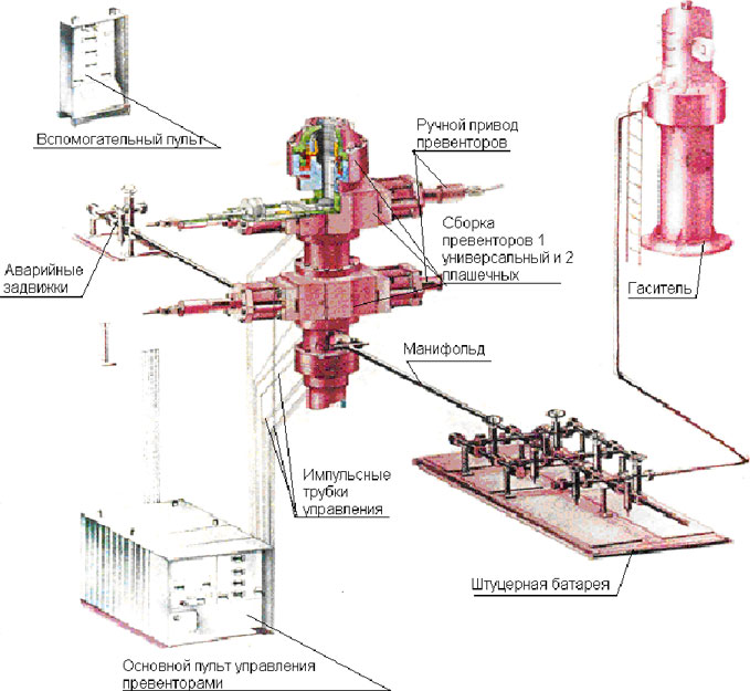 Противовыбросовое оборудование (ПВО) предназначено для герметизации устья скважины при строительстве скважин и капитальном ремонте для предупреждения, и ликвидации нефтегазопроявлений и открытых фонтанов. Монтируется на устье скважины на обсадную колонну, спущенную до ожидаемого вскрытия горизонта содержащего углеводороды.