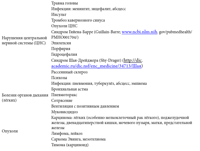 • Тип 4 – секреция вазопрессина регулируется нормально, но при этом возможно нарушение со стороны рецепторов к АДГ или секретируется альтернативный АДГ.7.3.2.1. Причины