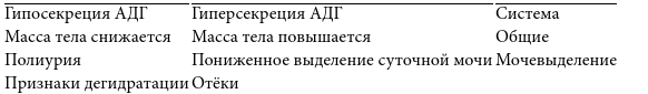 Несмотря на то обстоятельство, что гипо- и гиперсекреция АДГ – противоположные (симметричные) состояния, не весь набор симптомов этих состояний симметричен, а лишь некоторые (табл. 7.15). Клиницисту такой анализ полезно проводить для облегчения запоминания «симметричных» (противоположных) симптомов эндокринных болезней, отражающих симметричность патогенеза болезней: гипо- или гиперсекрецию гормона. Тем более что симметричные симптомы, как правило, специфичны – встречаются при ограниченном круге эндокринных болезней, поэтому служат базисными для организации дифференциальнодиагностического поиска.