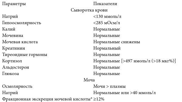 Диагностическими для СНАДГ служат следующие ниже критерии (при отсутствии нарушения функции почек).