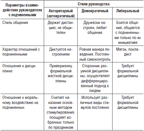 Согласно сложившейся традиции, именно он, а не либеральный, попустительский чаще всего анализируется в сравнительном плане с авторитарным стилем. Дело в том, что попустительский стиль намного менее эффективен, чем первые два, что заставляет большее внимание уделять именно авторитарному и демократичному стилям руководства[21].