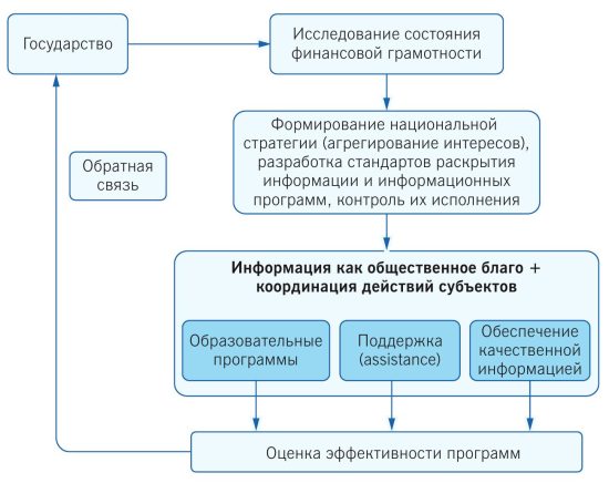 В ответ на необходимость повышения ФГ и улучшения защиты прав потребителей в нескольких странах были разработаны национальные стратегии повышения финансового образования. Центральные банки, органы финансового регулирования и казначейства этих стран начали поддержку проведения программ финансового просвещения. Кроме того, возникли различные площадки для координации деятельности государственных, некоммерческих и частных организаций ФО. В нескольких странах осуществляется оценка уровня ФГ населения, а эффект проведения программ по финансовому образованию все больше становится предметом обсуждения деятелей просвещения и экспертов. В ОЭСР было принято руководство по ФО[23] и утверждена долгосрочная инициатива в области повышения финансовой грамотности.