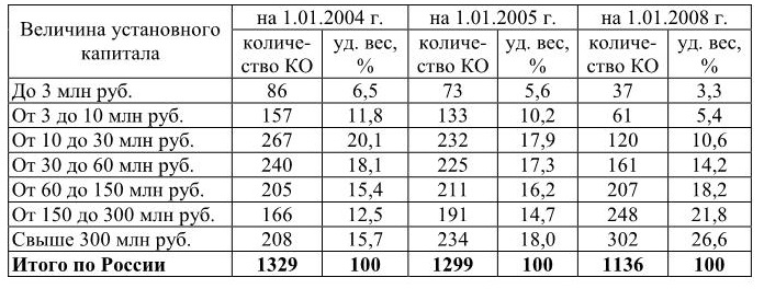 Группировка действующих кредитных организаций по величине зарегистрированного уставного капитала