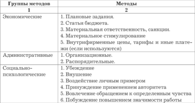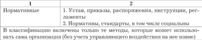 Классификация методов управления