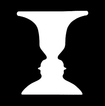 С одной стороны, это белая ваза на черном фоне. С другой стороны, мы видим два профиля на белом фоне. Большинство людей легко переходят от одного образа к другому, потому что это изображение искусно сочетается с двумя ментальными моделями, и мозг может переходить с одной на другую.
