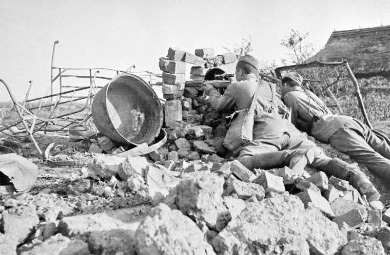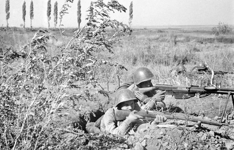 Боевые действия войск Юго-Западного фронта против германской группы армий «Юг» под Харьковом (1942). Бойцы Юго-Западного фронта в оборонительных боях