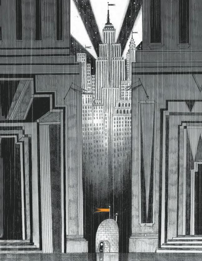 Мистер Пингвин жил и работал в иглу, примостившемся между двух небоскрёбов в Ситивилле. Сейчас там тихо и темно. Вращающееся кресло у рабочего стола пустует. Пишущая машинка заботливо укрыта тканью.