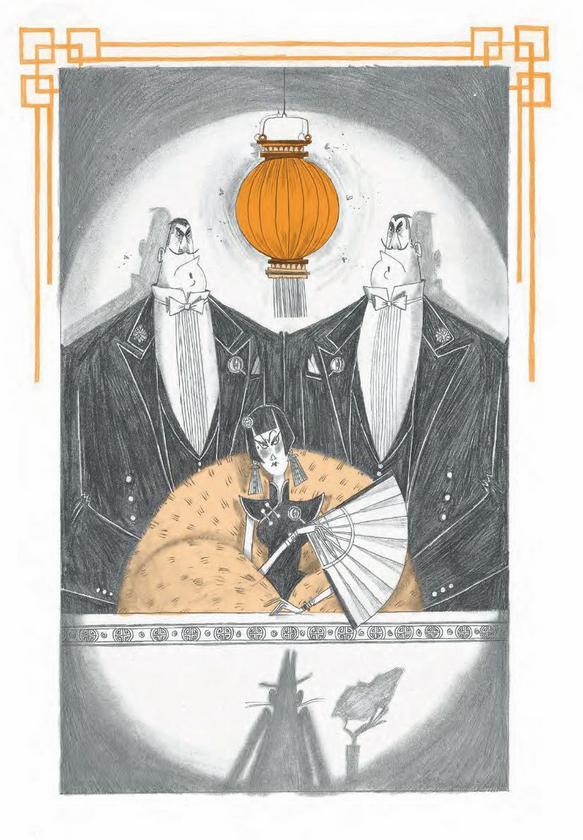 Да, он втиснулся в нарядный белый смокинг с кокетливым галстуком-бабочкой, аккуратно зачесал назад волосы (наверняка это парик!), но за всем этим, определённо, скрывается пингвин! Клюв, хоть и замаскированный фальшивыми усами, выдаёт его с потрохами!