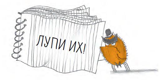 Позади Колин пританцовывал и махал лапками, как боксёр на ринге, держа блокнот с надписью: «ЛУПИ ИХ!»