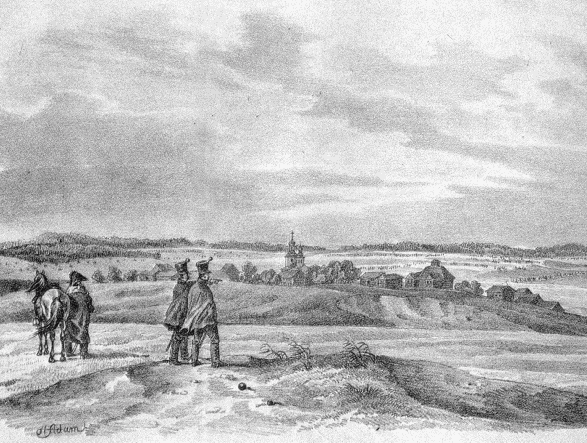 Село Бородино – подмосковное имение Давыдовых. Фрагмент литографии по рисунку А. Адама. Начало XIX в.