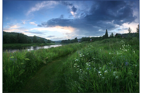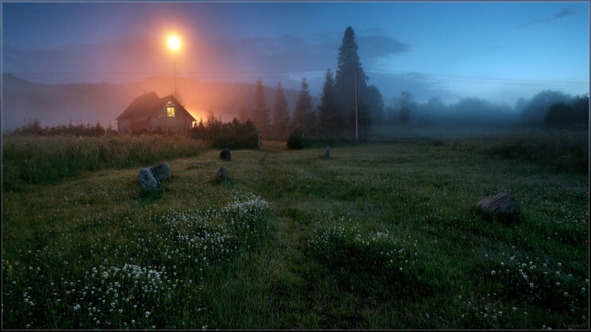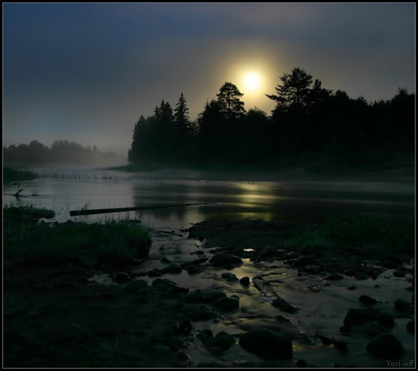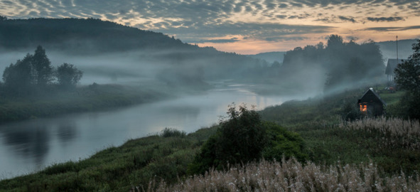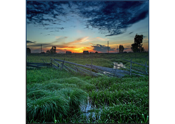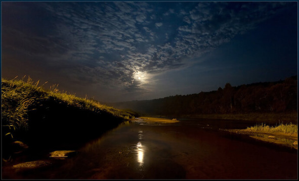Сквозь черные ветви пролился закат В багульную одурь глухого болота, Где гиблые зыби коварно манят, Где в темных промоинах булькает что-то. И в сердце тоска, и в извилинах страх. Пугают не духи болот и урочищ: В угрюмых чащобах полно росомах, Медведей полно и волков сколько хочешь. А ночь засветила лунищу-красу. Дрожат светлячки, в елях шепчут иголки. Не дай никому в диком Вепсском лесу Блудить по ночам без огня и двустволки.