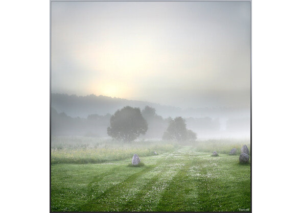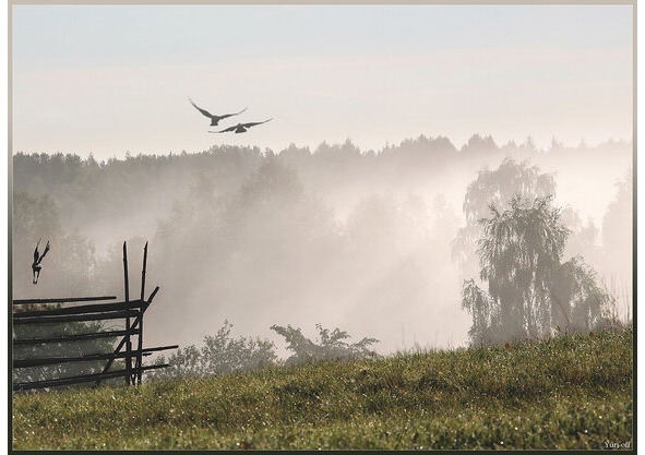 Погасла алая заря.Туман покосы застилает.Огромным диском выплываетЛуна в оттенках янтаря.В её оранжевых тонахНетопыри, как тени ада.И леса темная громадаНаводит оторопь и страх.В росе, в тревожных светлякахВсе в белом девы возникают.Они деревню огибаютИ исчезают в ивняках.Заснять бы их анфас и в профиль.Но знают бабы с неких пор,Что это тени трех сестер,Погибших летось в катастрофе.