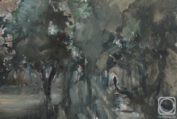 Сияла луна. Призрачные полосы лунного света пересекали дорожку, камушки на которой таинственно поблескивали. В аллее пряно пахло какими-то ночными цветами. Заливались кузнечики.
