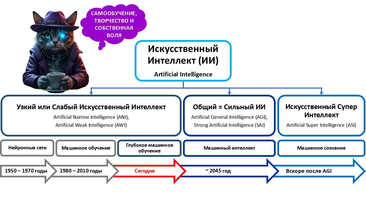 Искусственный сверхинтеллект (Artificial Super Intelligence, ASI) – это термин, который обозначает наивысшую степень развития искусственного интеллекта, превосходящую человеческие возможности во всех аспектах его жизнедеятельности.