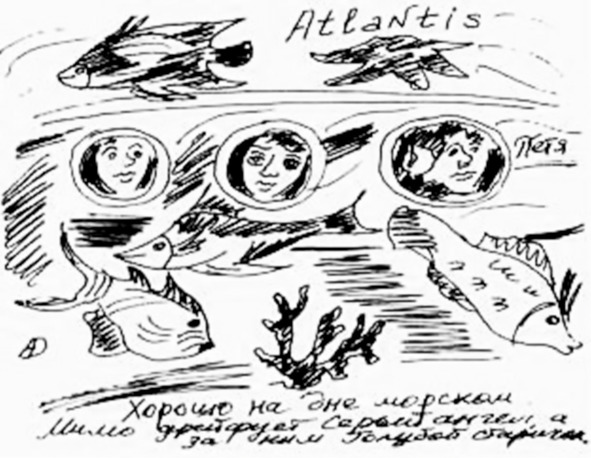 Действительно, «Атлантис» белел сквозь прозрачную воду и я даже углядел рядом с ним знакомую бешеную блондинку. Ей было грустно без нас с Петей.