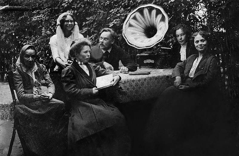 А.В. Галкин (второй слева) в д. Вешняки (сейчас Выхино) Московской губернии с матерью, сестрами и братом Пантелеймоном. 1912 г.