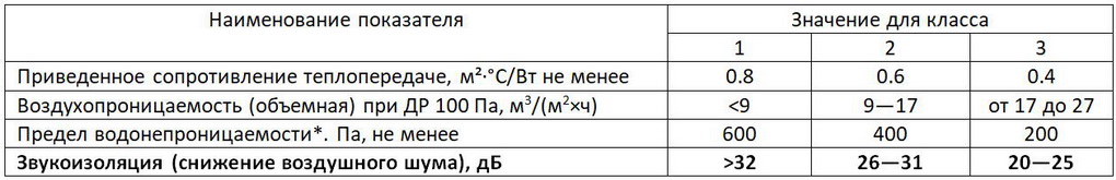 Дверные блоки с приведенным сопротивлением теплопередаче менее 0.4 м²·°C/Вт, объемной воздухопроницаемостью более 27 м3/(м2×ч)), звукоизоляцией менее 20 дБ классификации по указанным показателям не подлежат.