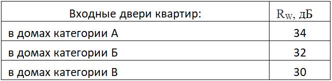 Таблица 2 – Требования к звукоизоляции входных дверей в квартирах