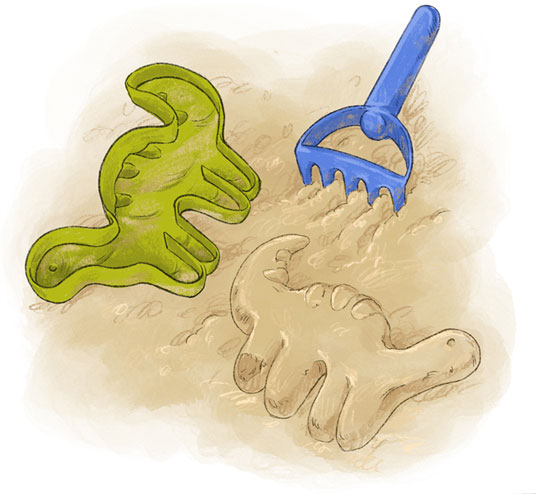 Солнечным воскресным днём Барбалюн вышел на прогулку со своей мамой и вот уже целый час играл в своей любимой песочнице недалеко от дома. Сегодня ему крупно повезло – удалось-таки отыскать клад: разрывая песок большим плоским камнем (совочки и лопатки нашему герою были не интересны) Барбалюн наткнулся на оранжевого динозаврика-формочку, которого, похоже, какой-то малыш давным-давно потерял в песчаных дюнах детской площадки.