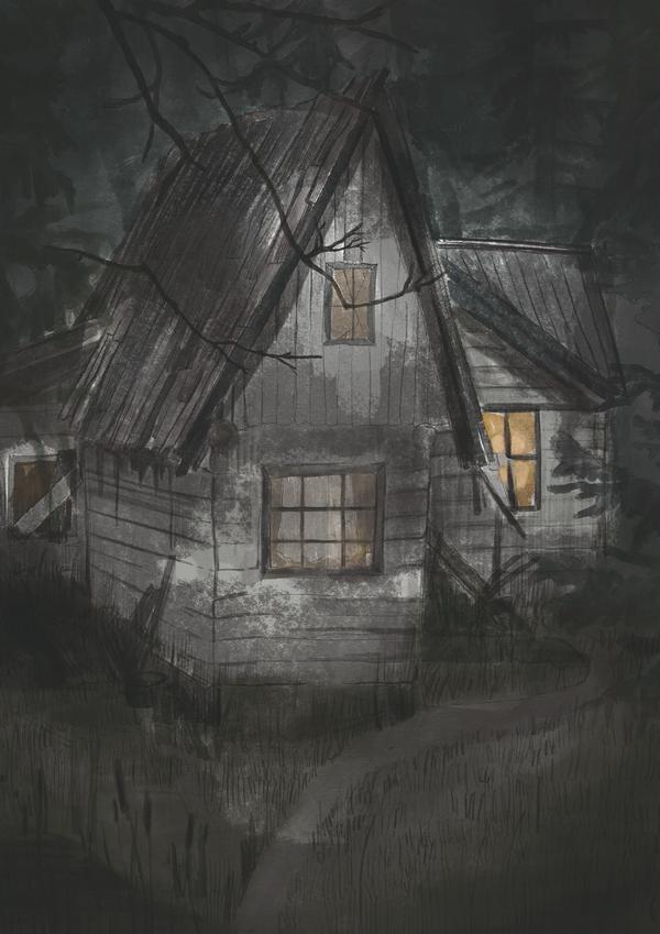 Наконец я перебрался через это болото, взобрался на маленький пригорок и теперь мог хорошо рассмотреть хату. Это даже была не хата, а именно сказочная избушка на курьих ножках. Она не касалась полом земли, а была построена на сваях, вероятно, ввиду половодья, затопляющего весною весь Ириновский лес. Но одна сторона её от времени осела, и это придавало избушке хромой и печальный вид. В окнах недоставало нескольких стёкол; их заменили какие-то грязные ветошки[25], выпиравшиеся горбом наружу.