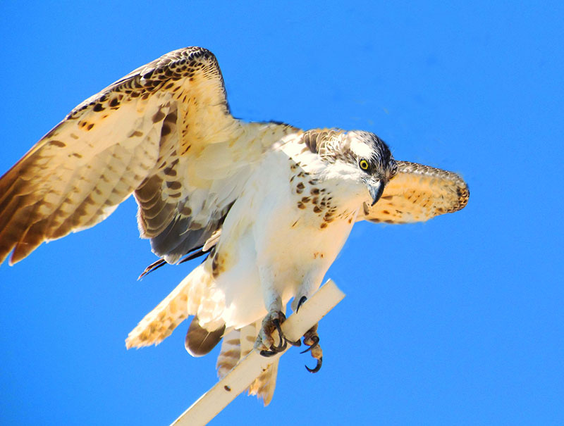 Некоторые хищные птицы чувствуют себя хозяевами на побережье моря, где отдыхают тысячи наших соотечественников. На пляже мы видели сначала одну скопу, потом парочку на смотровой вышке в Египте. Посмотрите, какой красавец! Затем он сел на мачту катамарана. А я все гадал, что же они делают на побережье. Ведь главная их пища, – это рыба, как пишут в справочниках. Потом дождался. Одна из птиц ухватила горлицу, которых много именно здесь на побережье. Она держала горлицу цепкими мощными когтями. Дальше парочка этих птиц полетела в море. Я использовал свою камеру с 35-кратным зумом, в качестве бинокля с 35-кратным увеличением и увидел, что хищные птицы расположились на бакене в море и расправились с горлицей.