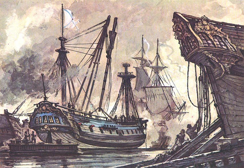Гравюра Иоганна Мартина Билля. Кинсбурнская баталия 1787