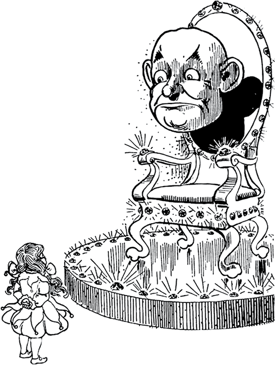 Солдат открыл дверь. Элли робко вошла и очутилась в удивительном месте. Тронный зал Гудвина был круглый, с высоким сводчатым потолком; и повсюду – на полу, на потолке, на стенах – блестели бесчисленные драгоценные камни.