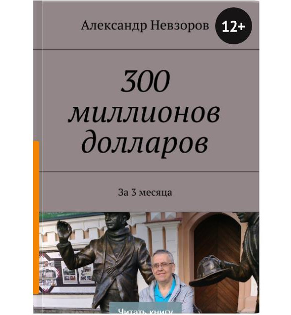 Who am I, Alexander Nevzorov, who imagines himself a god and wants to receive (from nothing) as much as three hundred million dollars? I will tell about myself. Now I’m 60 years old, this remarkable event happened less than a month ago. I am a young pensioner, with a pension of 9.5 thousand rubles. I work to the best of my ability, performing not very skilled work in recent years. I write books. You will not believe, but today I have them published in the publishing house Ridero almost five hundred. All books are available on the Internet, in free access and free sale. But I’m not a professional writer, because I can not live on the income from books yet. The average “check” for the month is now 2—3 thousand rubles.
