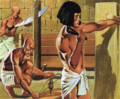 Египетские мастера освоили такие сложные технологические процессы, как литьё от самых разнообразных статуэток и до дверей довольно большого размера и сложной формы.