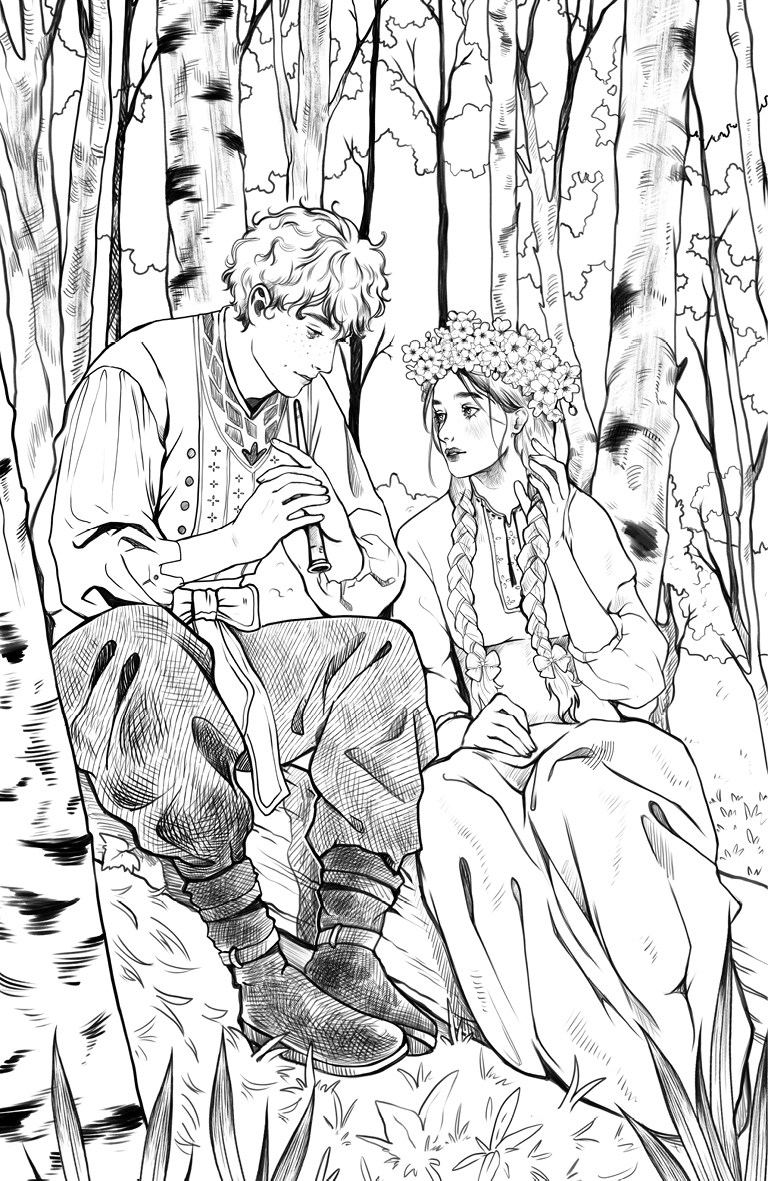 Сердечный друг, свою девичью волю,Подруг, родных на милого дружкаСменяла я; не обмани Купаву,Не погуби девического сердца.Отходят и садятся на крыльце избы Мураша.