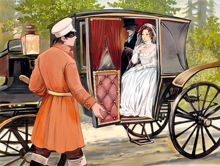 Итак, все мои блестящие надежды рушились! Вместо весёлой петербургской жизни ожидала меня скука в стороне глухой и отдалённой. Служба, о которой за минуту думал я с таким восторгом, показалась мне тяжким несчастием. Но спорить было нечего. На другой день поутру подвезена была к крыльцу дорожная кибитка; уложили в неё чемодан, погребец[10] с чайным прибором и узлы с булками и пирогами, последними знаками домашнего баловства. Родители мои благословили меня. Батюшка сказал мне: «Прощай, Пётр. Служи верно, кому присягнёшь; слушайся начальников; за их лаской не гоняйся; на службу не напрашивайся; от службы не отговаривайся; и помни пословицу: береги платье снову, а честь смолоду». Матушка в слезах наказывала мне беречь моё здоровье, а Савельичу смотреть за дитятей. Надели на меня заячий тулуп, а сверху лисью шубу. Я сел в кибитку с Савельичем и отправился в дорогу, обливаясь слезами.